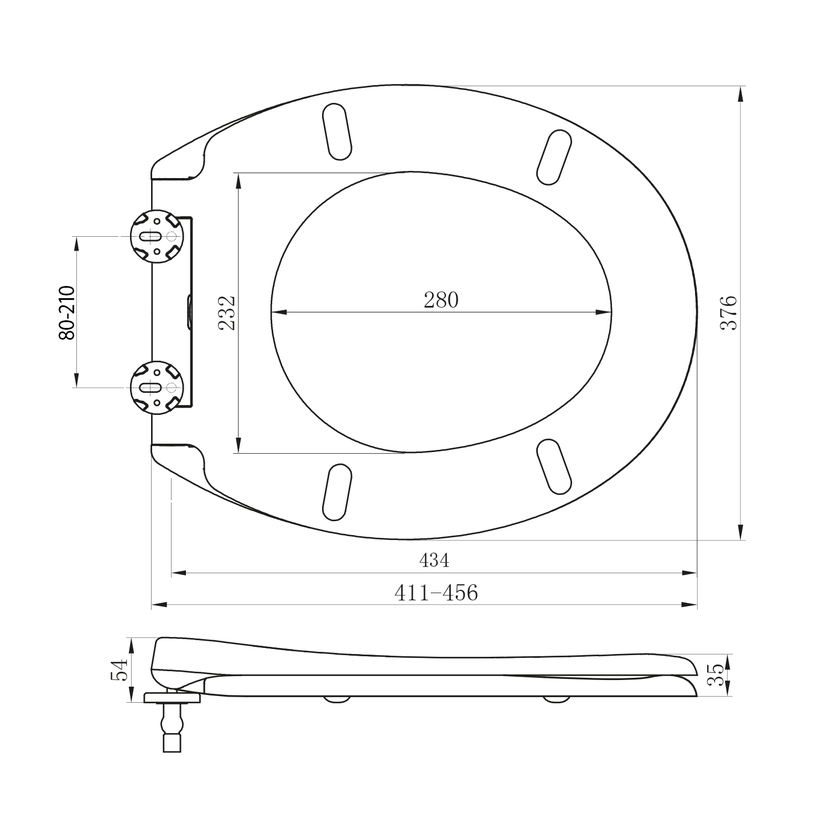 Nerezové, nastavitelné úchyty, které umožní sedátko přizpůsobit rozměrům mísy