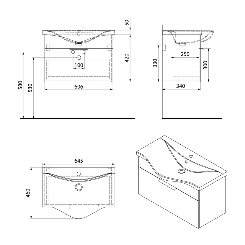 Parametry produktu  AKIRA umyvadlová skříňka 60,6x42x34cm, bílá