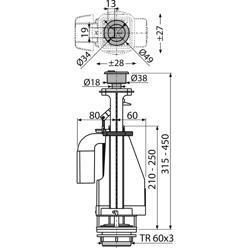 Alcadrain A08A Vypouštěcí ventil s dvoutlačítkem