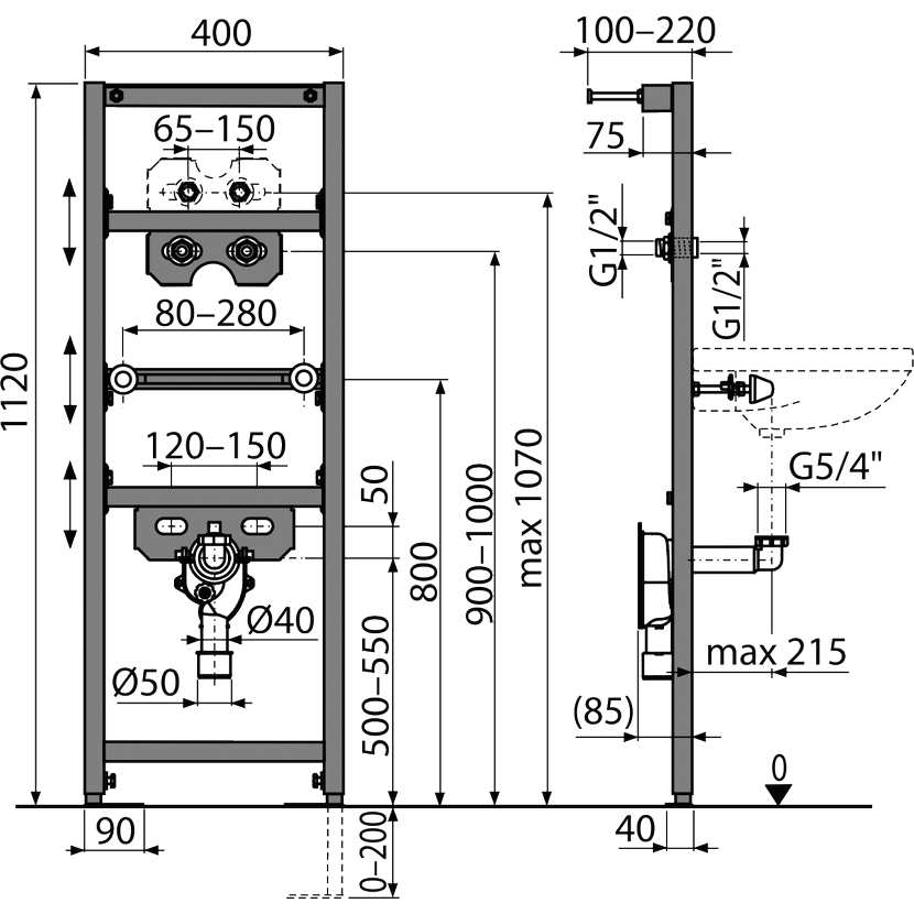 Alcadrain A104AVS/1120 Montážní rám pro umyvadlo a baterii s vestavěným sifonem