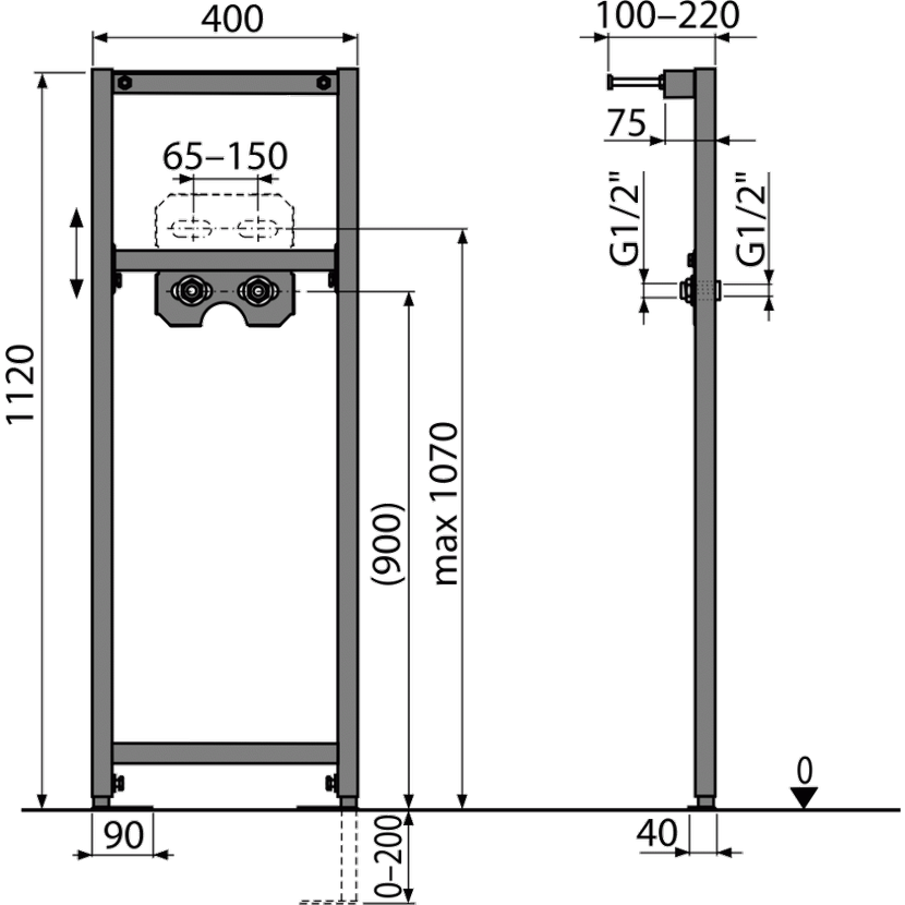 • Pro montáž před nosnou stěnu nebo do sádrokartonové konstrukce