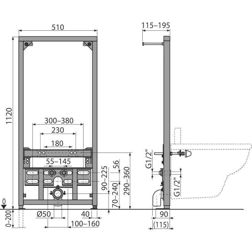 Alcadrain A105/1120 Montážní rám pro bidet
