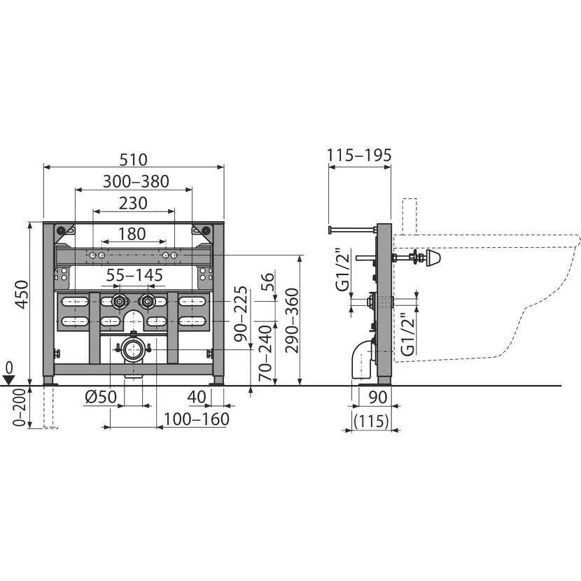 • Pro závěsný bidet s připojovací roztečí 180 mm nebo 230 mm