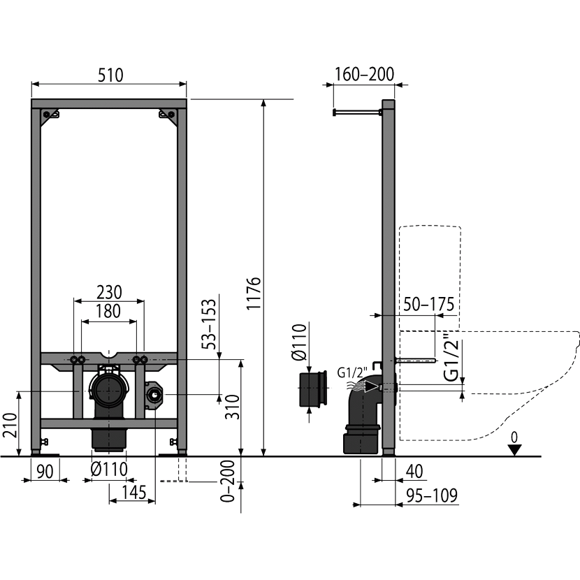 Alcadrain A113/1200 Montážní rám pro závěsné WC kombi