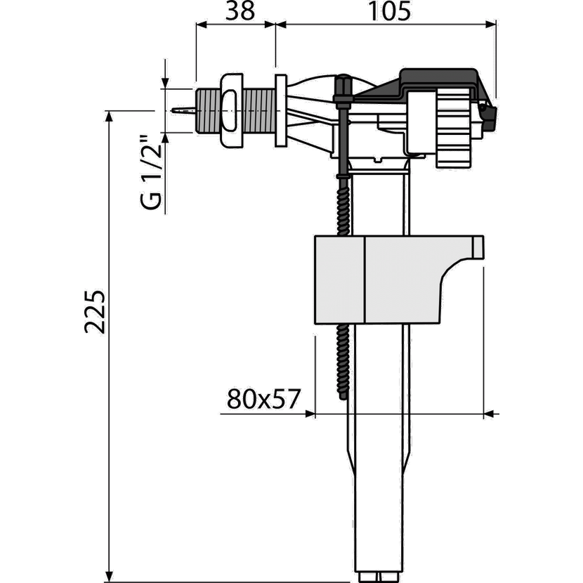 Alcadrain A16-1/2" Napouštěcí ventil boční kovový závit pro keramické nádržky