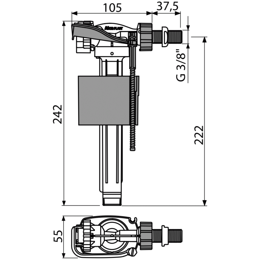 Alcadrain A160-3/8" Napouštěcí ventil boční kovový závit pro keramické nádržky