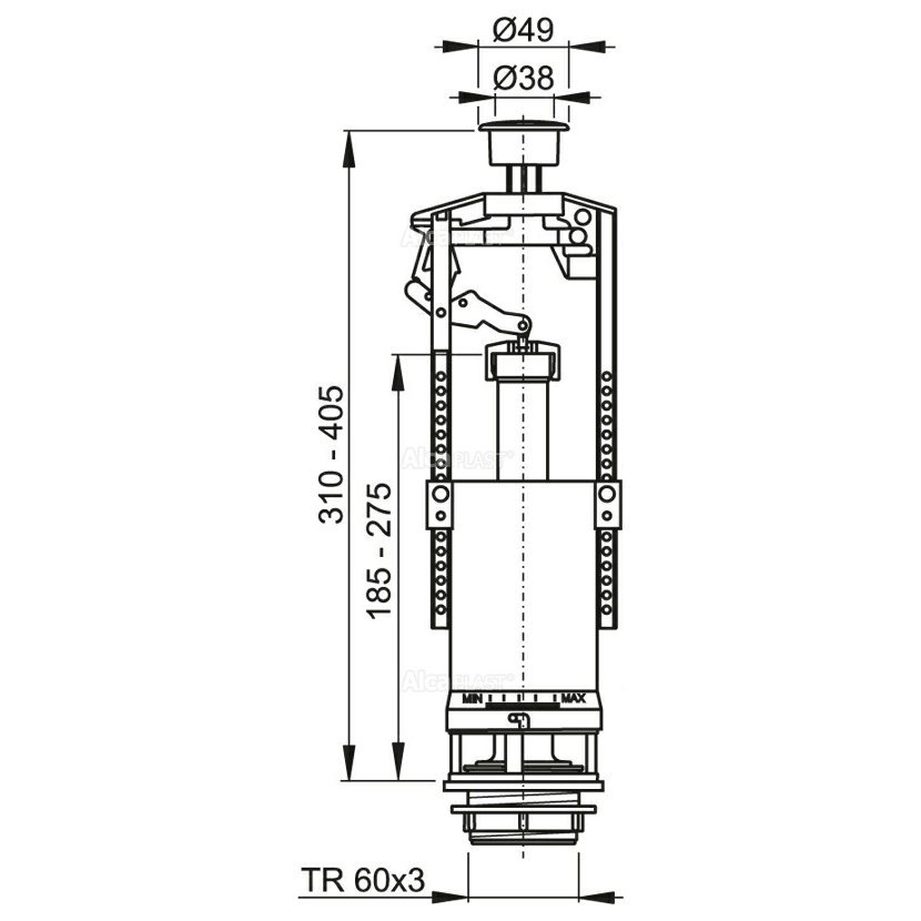 • Konstrukce umožňuje seřízení optimální výšky ventilu dle výšky nádržky