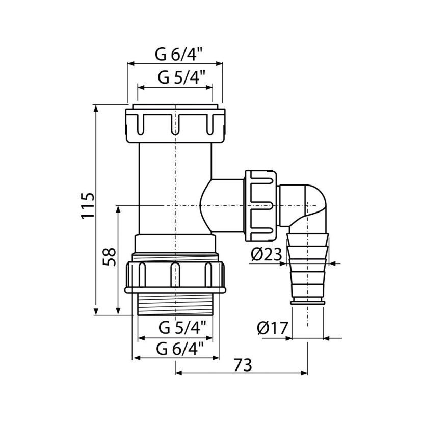 Alcadrain A300 Mezikus 5/4"–6/4" a 6/4"–5/4" s přípojkou