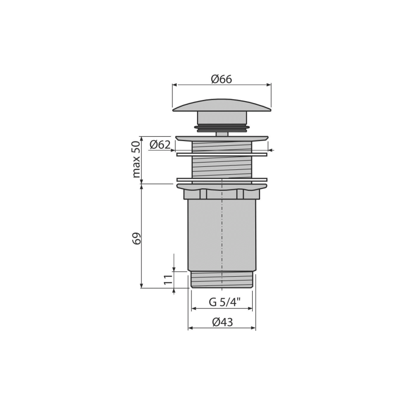 Alcadrain A395 Výpust umyvadlová CLICK/CLACK 5/4" celokovová bez přepadu, velká zátka