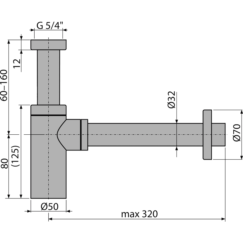 Alcadrain A400 Sifon umyvadlový DN32 DESIGN celokovový, kulatý