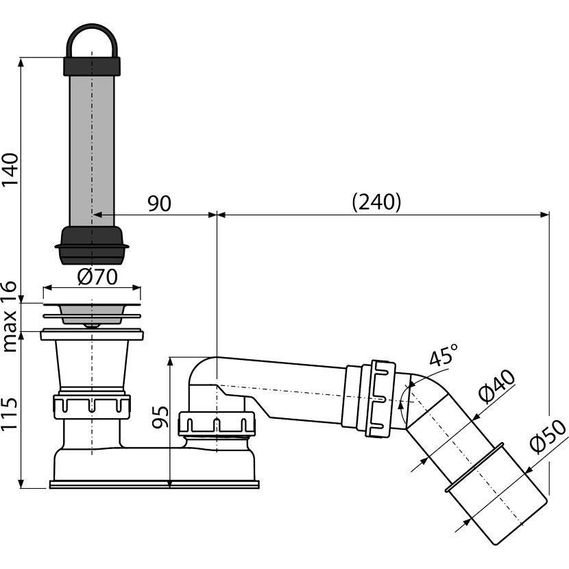 Alcadrain A462-50 Odtoková souprava se zápachovou uzávěrou a kolenem