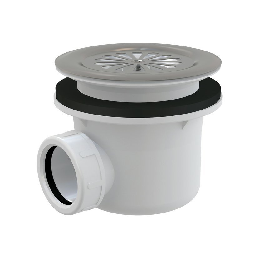 Vaničkový sifon s krytkou leštěnou nerez mřížkou o průměru 90 mm
