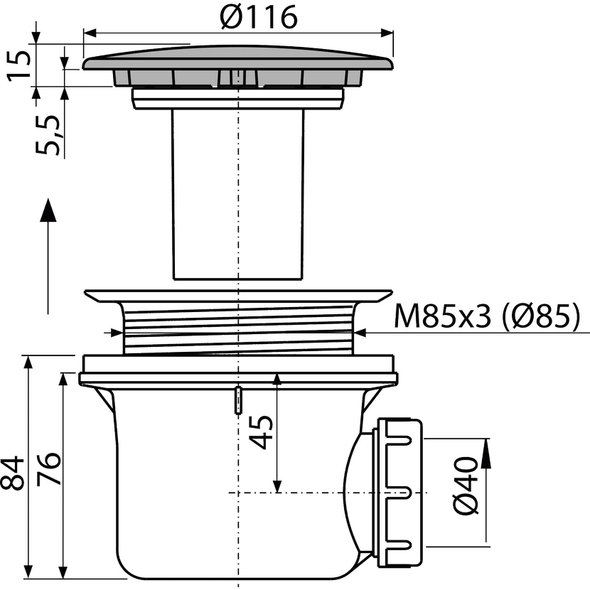 Alcadrain A49K MAT Sifon vaničkový, kov LUX
