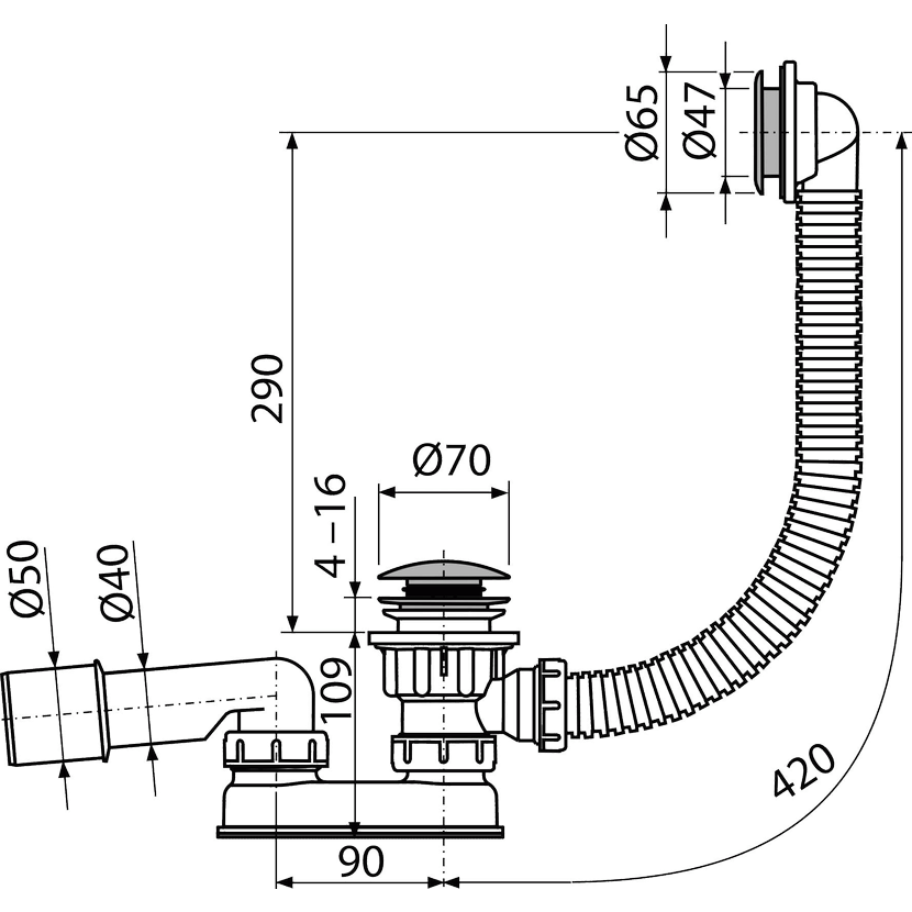 Alcadrain A503KM Sifon vaničkový CLICK/CLACK, kov