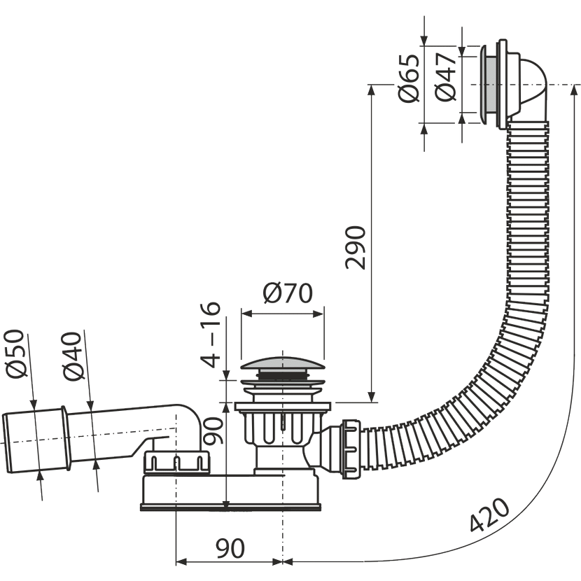 Alcadrain A506KM Sifon vaničkový CLICK/CLACK, kov