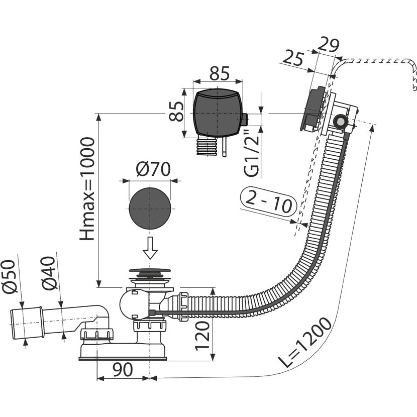 - Délka vanového sifonu 120 cm