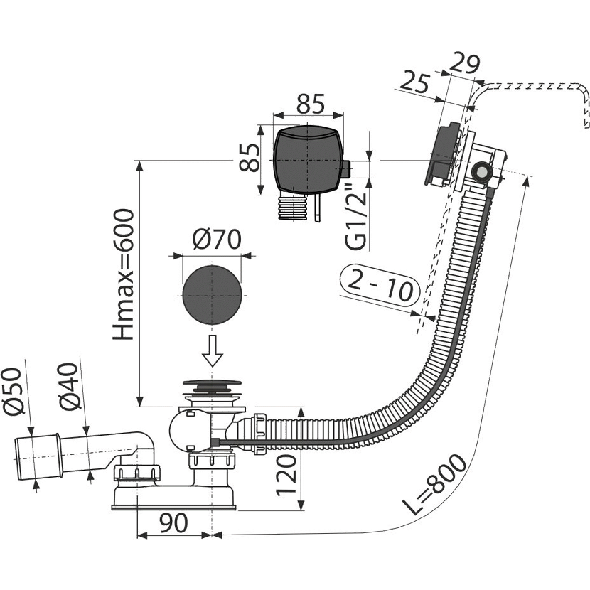 - Délka vanového sifonu 80 cm