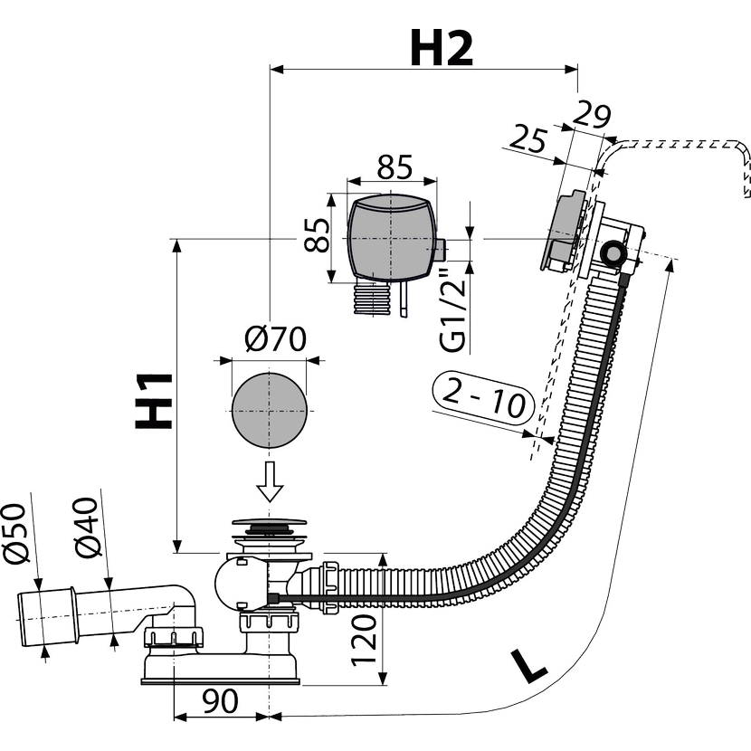 - Délka vanového sifonu 100 cm
