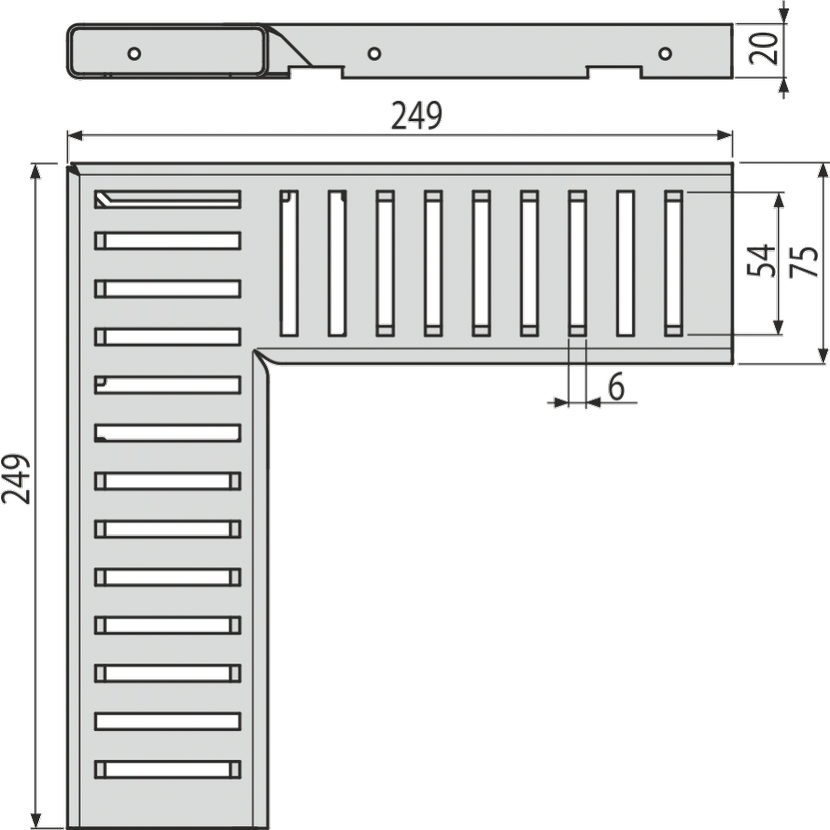 Parametry produktu  Alcadrain ADZ-R102R Rošt pro drenážní žlab rohový 75 mm, pozinkovaná ocel