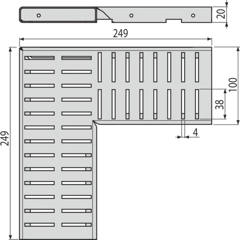 Parametry produktu  Alcadrain ADZ-R322R Rošt pro drenážní žlab rohový 100 mm, nerez