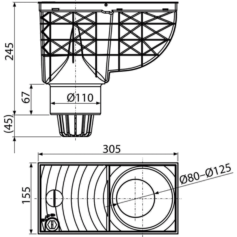 Alcadrain AGV1 Univerzální lapač střešních splavenin 300×155/110 mm přímý, černá