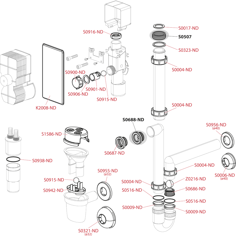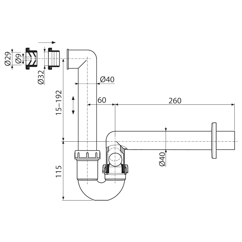 Alcadrain AKS2 sifon pro odkapávající kondenzát DN40