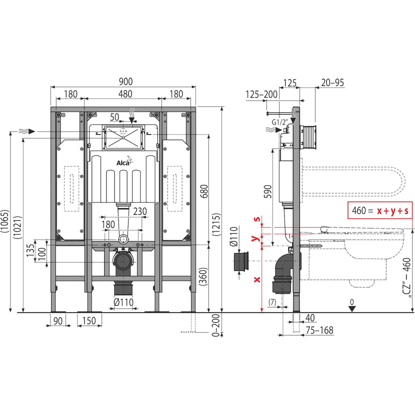 - Pro montáž závěsného WC s připojovací roztečí 180 mm nebo 230 mm