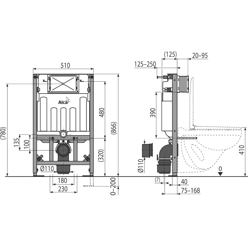 Alcadrain AM101/850W Předstěnový instalační systém pro suchou instalaci (do sádrokartonu)