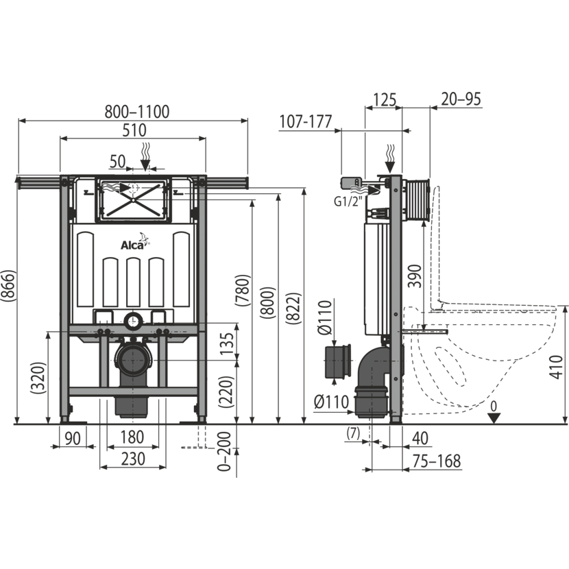 Alcadrain AM102/850 Předstěnový instalační systém pro suchou instalaci