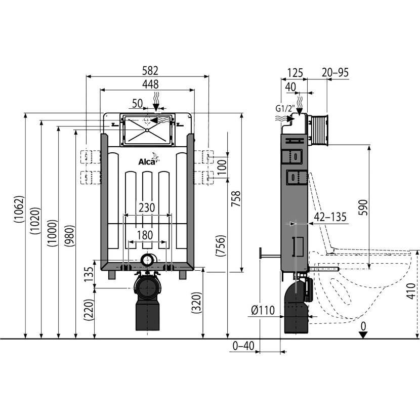- Pro montáž závěsného WC s připojovací roztečí 180 mm nebo 230 mm