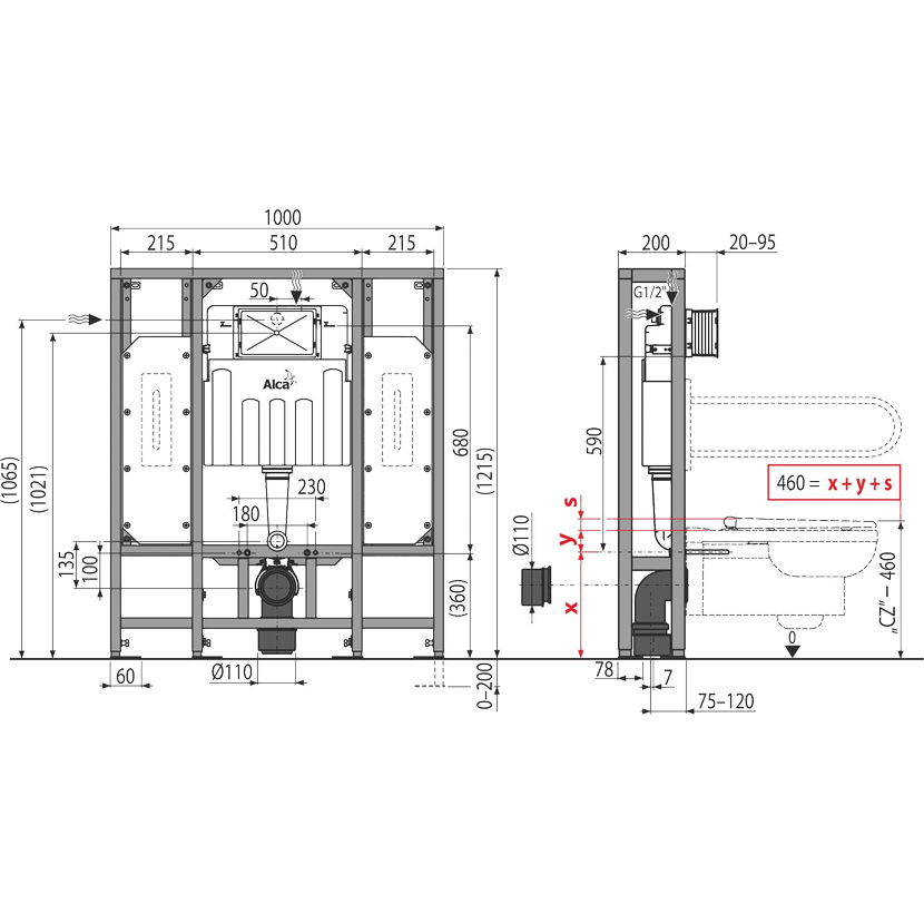 Alcadrain AM116/1300H Předstěnový instalační systém pro suchou instalaci (do prostoru)