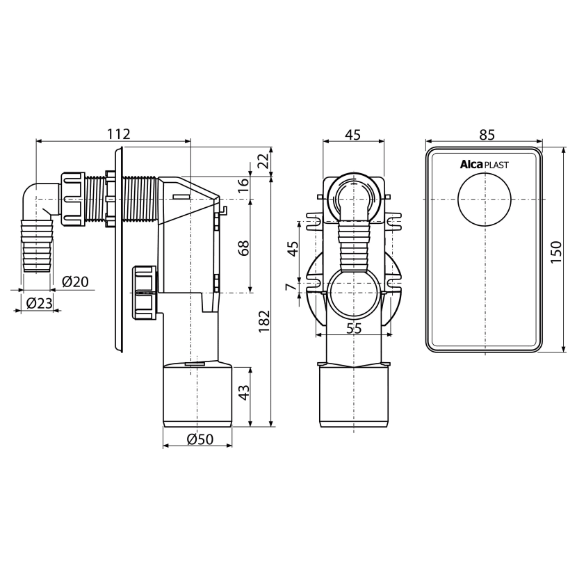 Alcadrain APS4 sifon pračkový podomítkový bílý
