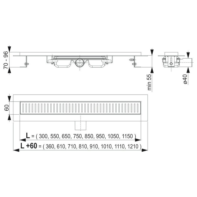 Parametry produktu  Alcadrain APZ101-1150 LOW liniový podlahový žlab snížený nerez