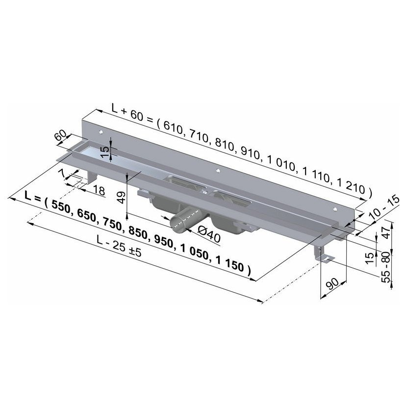 Parametry produktu  Alcadrain APZ104-1050 FLEXIBLE LOW liniový podlahový žlab snížený nerez