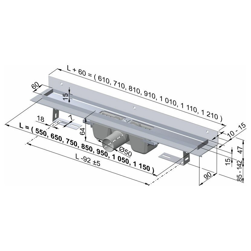 Parametry produktu  Alcadrain APZ4-850 FLEXIBLE liniový podlahový žlab nerez