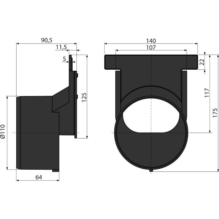 Alcadrain AVZ-P010 Čelo boční pro napojení na odpad DN110