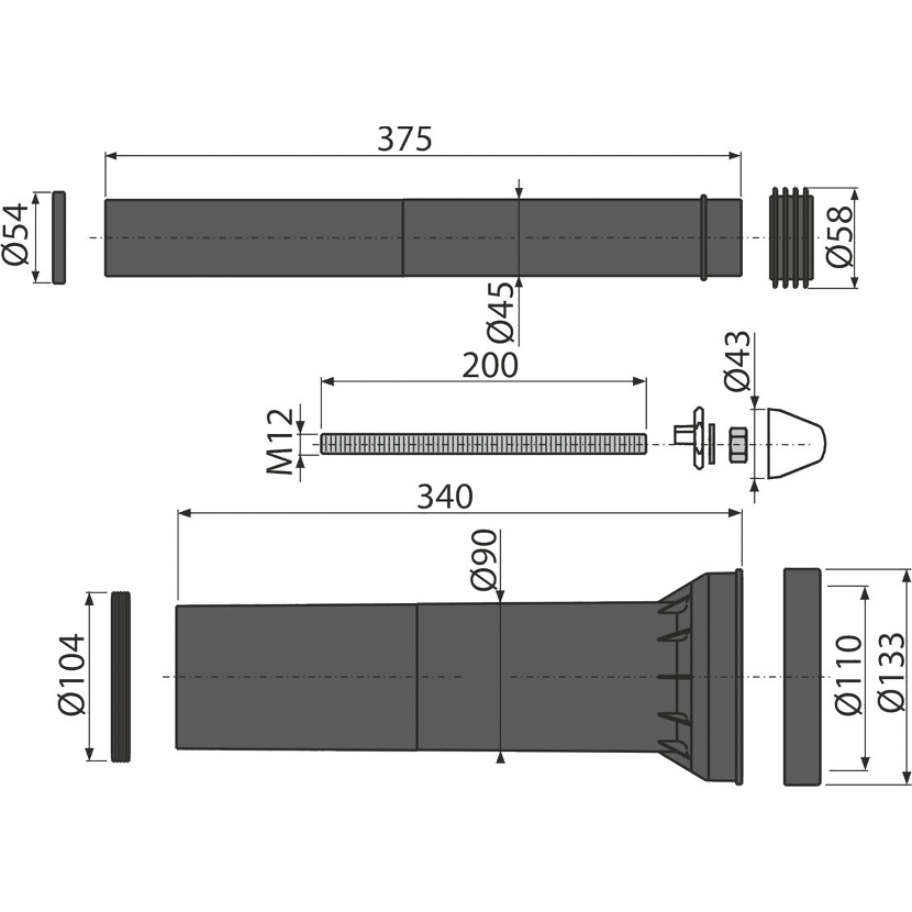 Alcadrain M9000 Příslušenství komplet prodloužené k WC pro invalidy