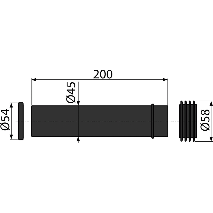 • Propojka pro napojení závěsné WC mísy k přívodu vody z nádrže, polypropylen, O45 mm