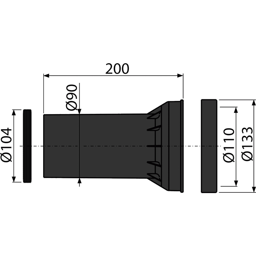 • Přímé hrdlo pro napojení závěsné WC mísy k odpadu, polypropylen, O90 mm, včetně těsnění