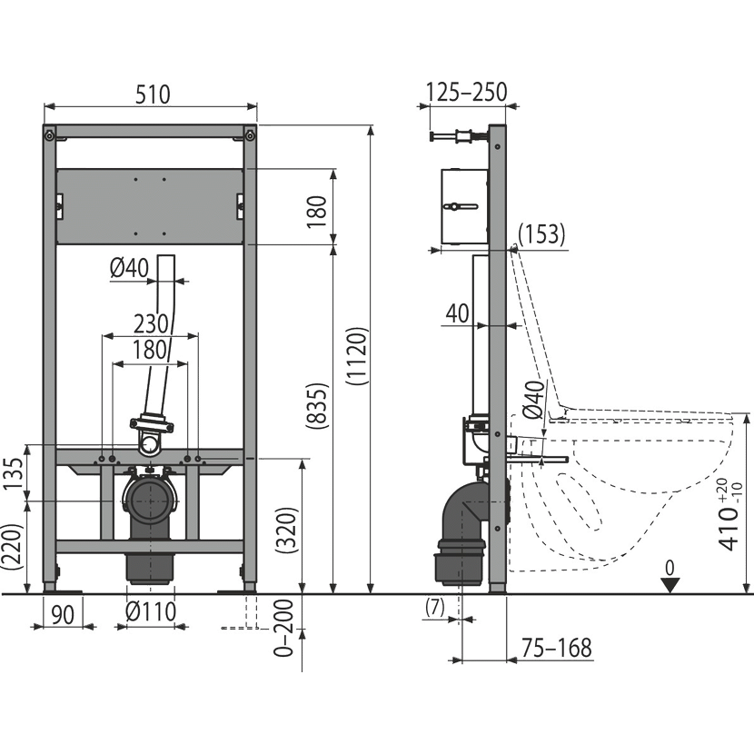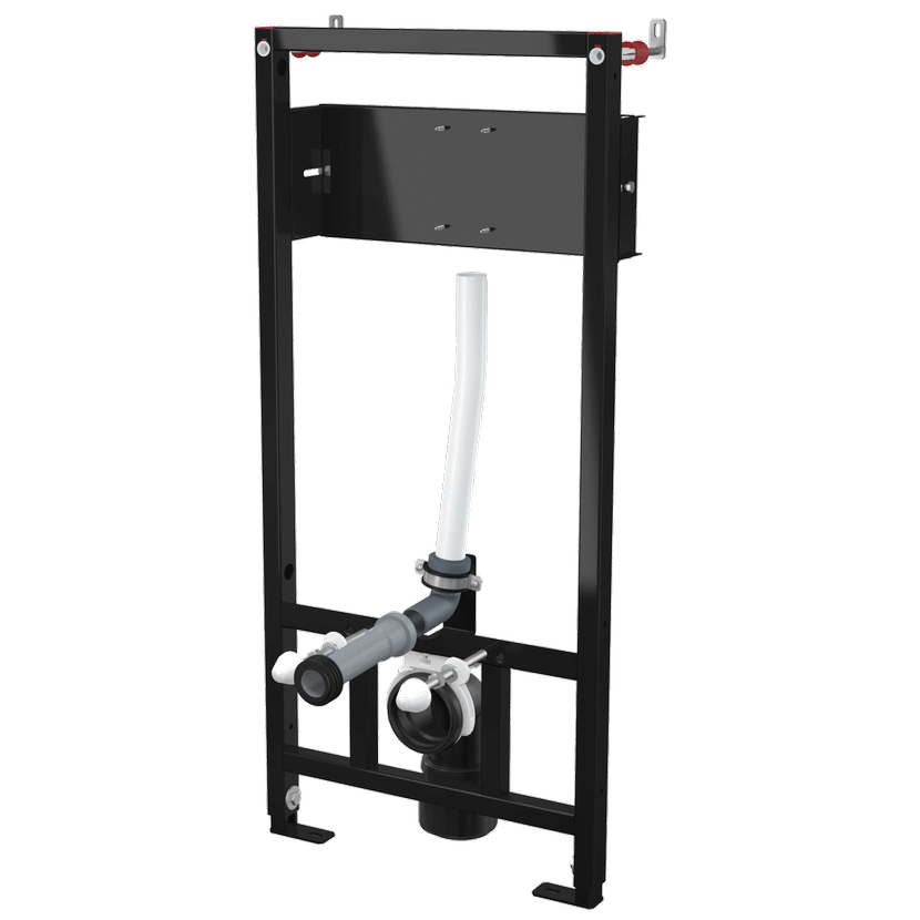 - Pro montáž před nosnou stěnu nebo do sádrokartonové konstrukce s přípravou pro montáž senzorového splachovače
