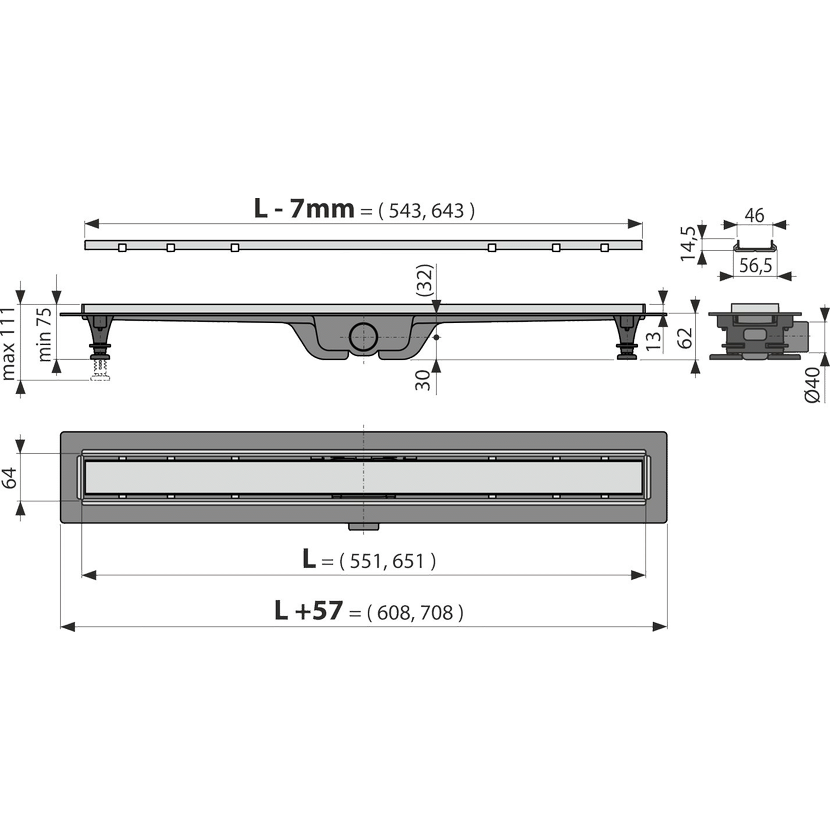 Parametry produktu Alcadrain podlahový žlab s nerezovým okrajem pro oboustranný rošt APZ20-550