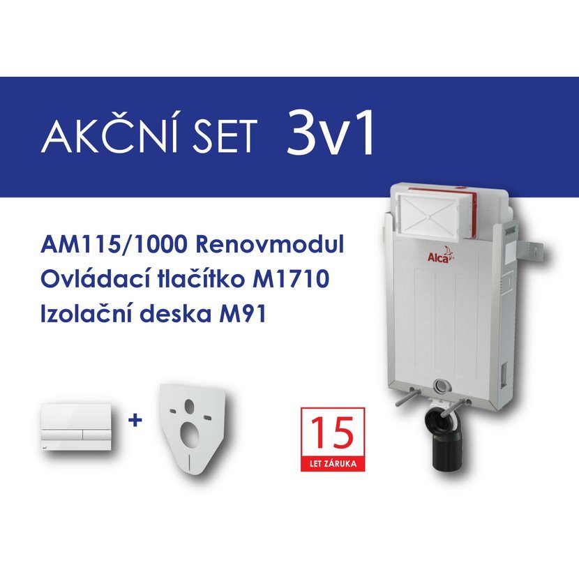 Alcadrain WC set 3v1 Renovmodul AM115+tlačítko M1710+izolační deska M91