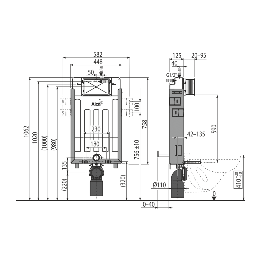 - splachovací nádrž Alcaplast Renovmodul AM115/1000 pro instalaci závěsné mísy