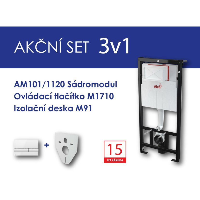Alcadrain WC set 3v1 Sádromodul AM101+tlačítko M1710+izolační deska M91