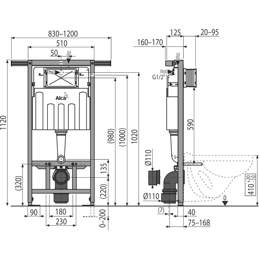 Předstěnový instalační modul určený pro suchou instalaci především při rekonstrukci bytových jader.A102/1120 Jádromodul