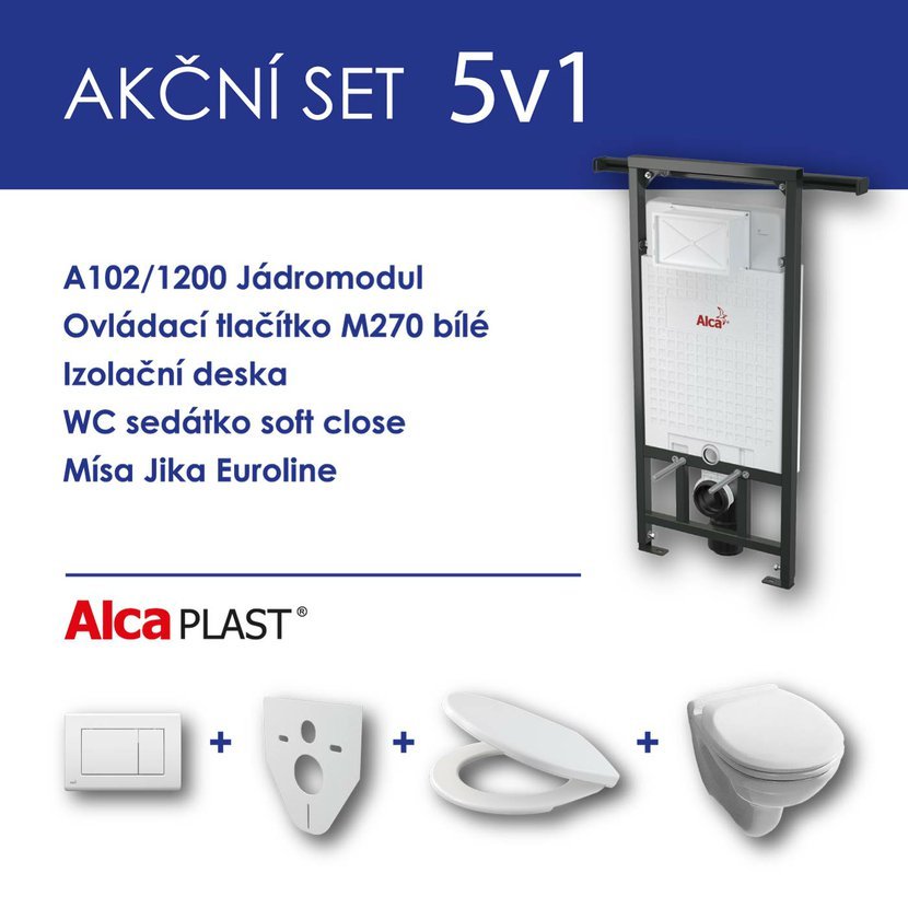 Alcadrain WC set 5v1 jádromodul A102+tlačítko M270+ sedátko soft close+WC mísa