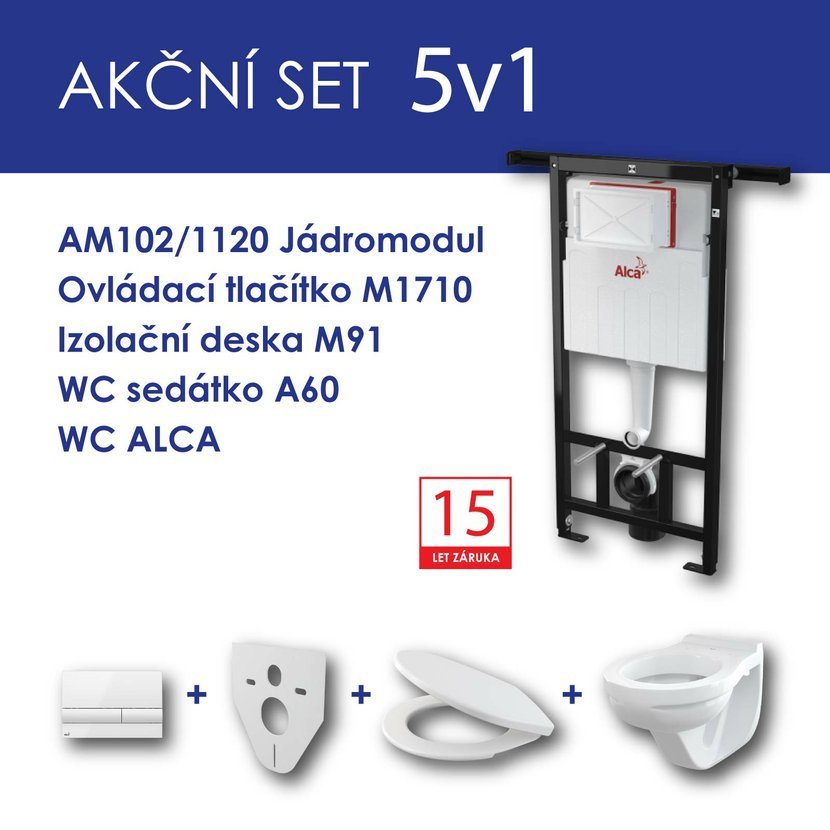 Alcadrain WC set 5v1 Jádromodul AM102+tlačítko M1710+sedátko+WC mísa ALCA