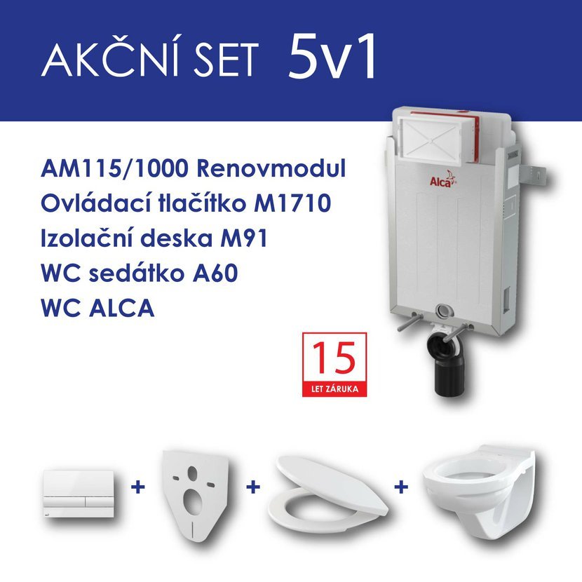Alcadrain WC set 5v1 Renovmodul AM115+tlačítko M1710+sedátko+WC mísa ALCA