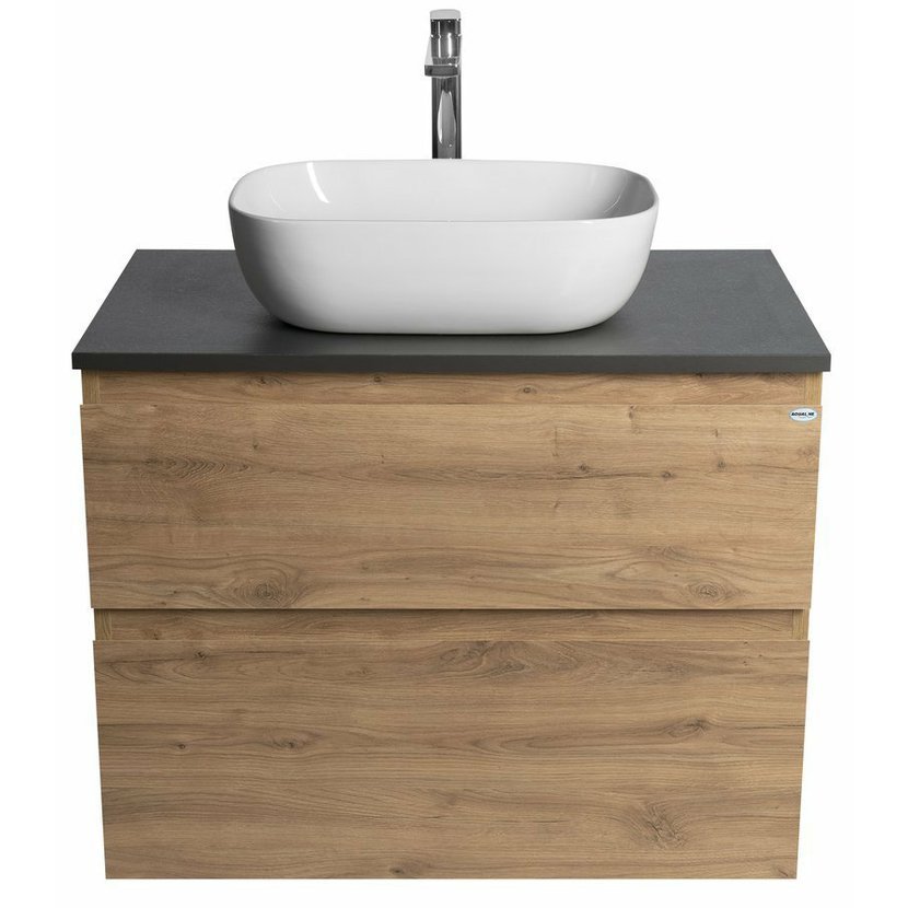 Koupelnový nábytek ALTAIR s deskou ALTAIR (HPL) v dekoru dub emporio a antracit břidlice platin lze kombinovat s umyvadly na postavení.