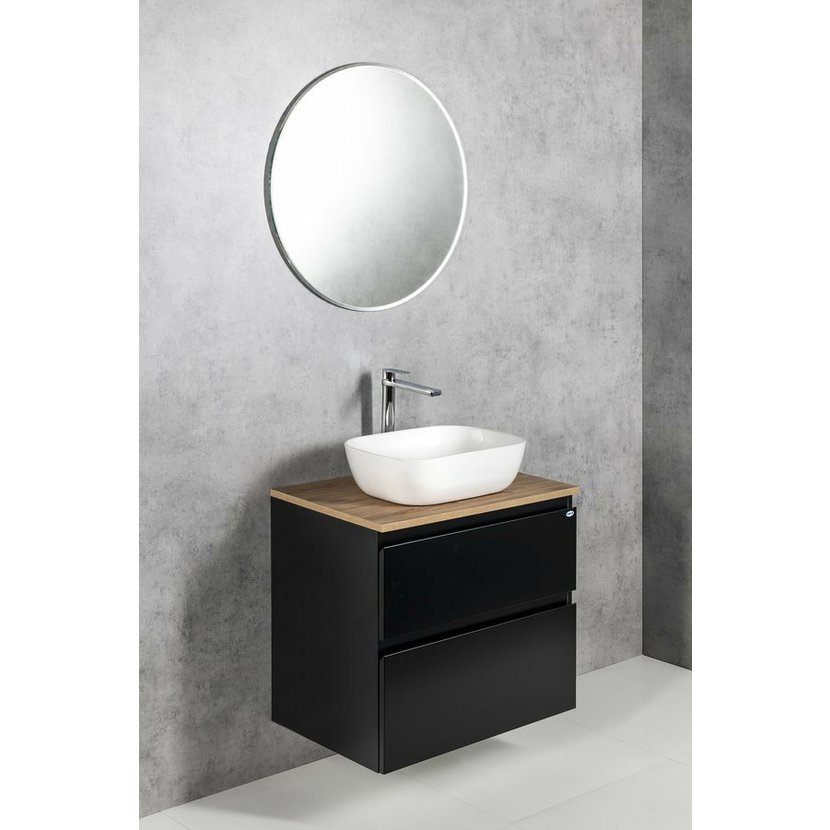 Koupelnový nábytek ALTAIR s deskou ALTAIR (HPL) v dekoru dub emporio a antracit břidlice platin lze kombinovat s umyvadly na postavení.